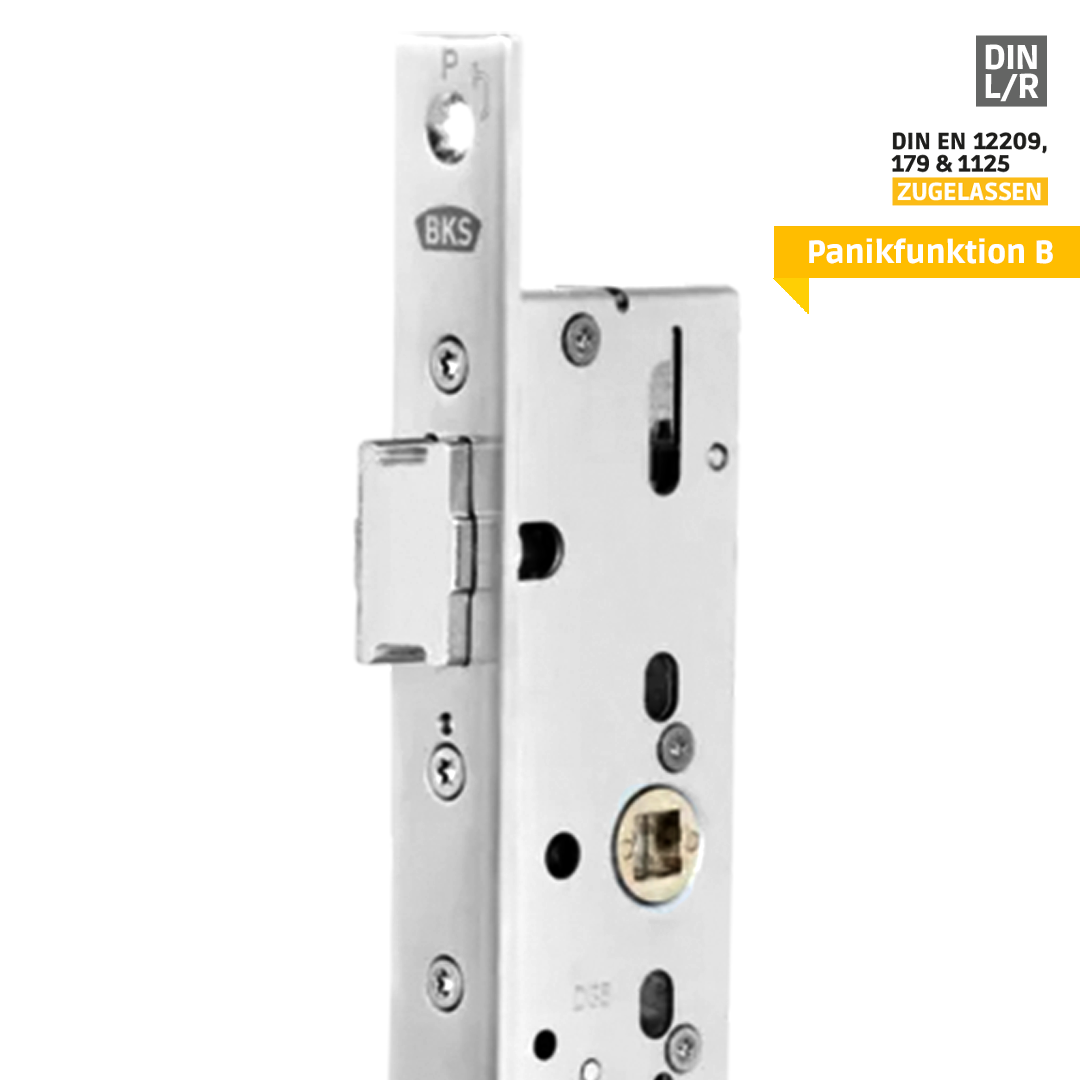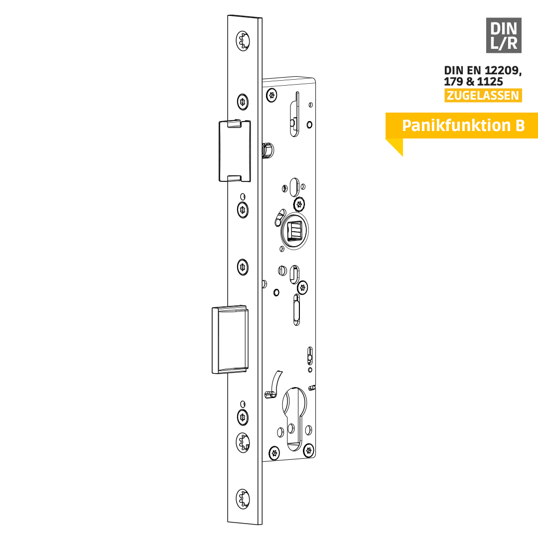 Das Panikschloss B-1820 ist ein hochwertiges Einsteckschloss für 1-flügelige Flucht- und Rettungswegtüren.