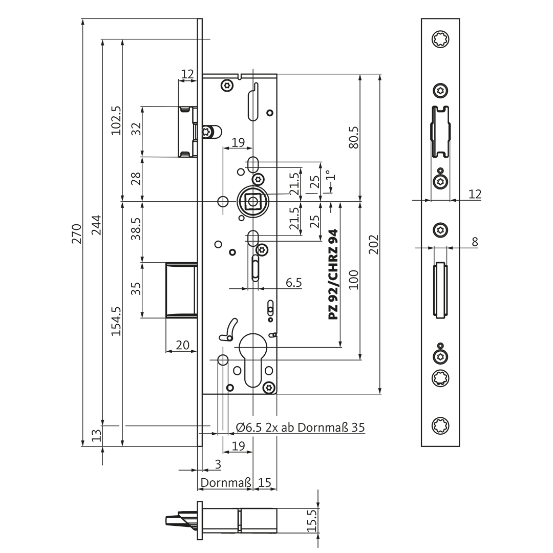 Produktinformationen "BKS Anti-Panik-Einsteckschloss B-1820, Panik B, F24x270/92/9"