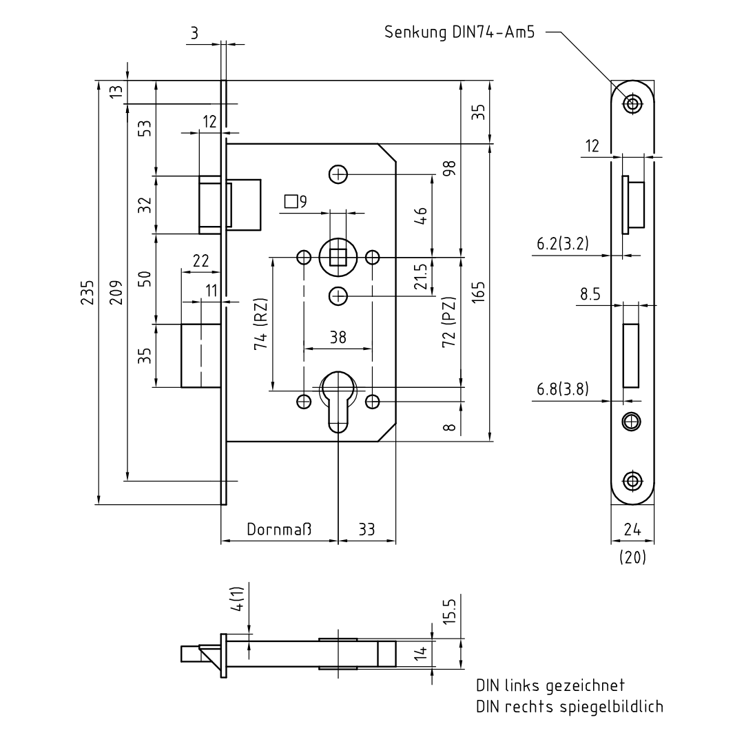 Produktinformationen "BMH FH-Panik-Einsteckschloss 1013, Panik E, F24x235/65/72/9 Links"