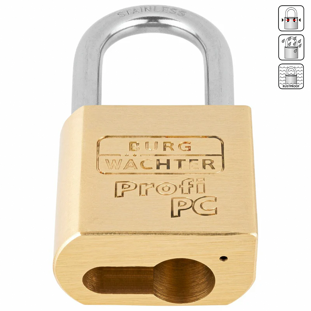 Das Burg-Wächter Vorhängeschloss 116 Profi PC ist ein bewährtes Vorhängeschloss für private und gewerbliche Anwendungen – speziell für den Außenbereich entwickelt. Sein massiver Messingkorpus in Kombination mit dem gehärteten, doppelt verriegelten Edelstahlbügel bietet aximalen Schutz gegen Aufbruch, Korrosion und Witterungseinflüsse. Ideal für Spinde, Schließfächer, Werkzeugkisten, Schuppen, Keller, Tore oder Fahrräder.