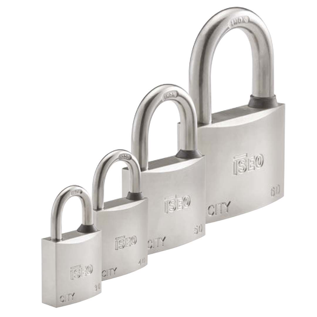 Die automatische Verriegelung sorgt für eine besonders einfache Handhabung: Bügel zudrücken, fertig. Ausgestattet mit 3 nummerierten, vertikalen Messingschlüsseln sowie 4–5 einbruchsicheren Messingstiften (abhängig vom Modell), bietet das Schloss höchste Sicherheit. Der CITY30 verfügt über eine Edelstahl-Schließfeder, der CITY50 über eine Phosphorbronze-Schließfeder mit 5G-Sicherheitsprofil. Polierter, satinierter Korpus rundet das hochwertige Design ab.