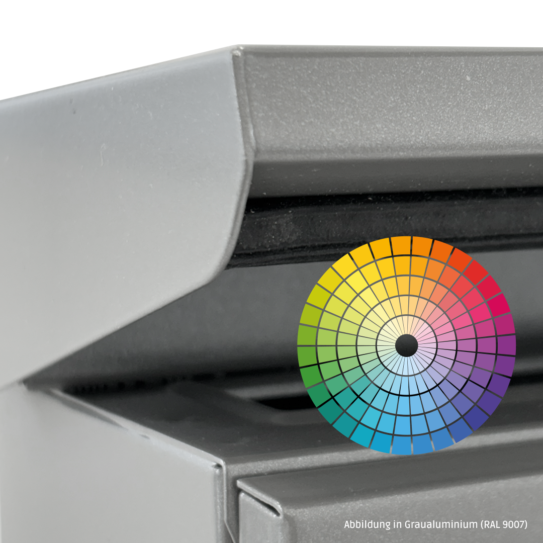 Bitte beachten Sie, dass die gezeigten Farbtöne durch individuelle Monitorfarbeinstellungen nicht farbverbindlich sind. Für den genauen Farbton nehmen Sie bitte ein RAL-Farbregister zur Hand.