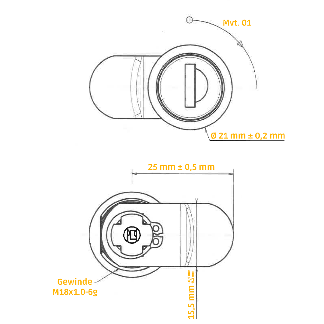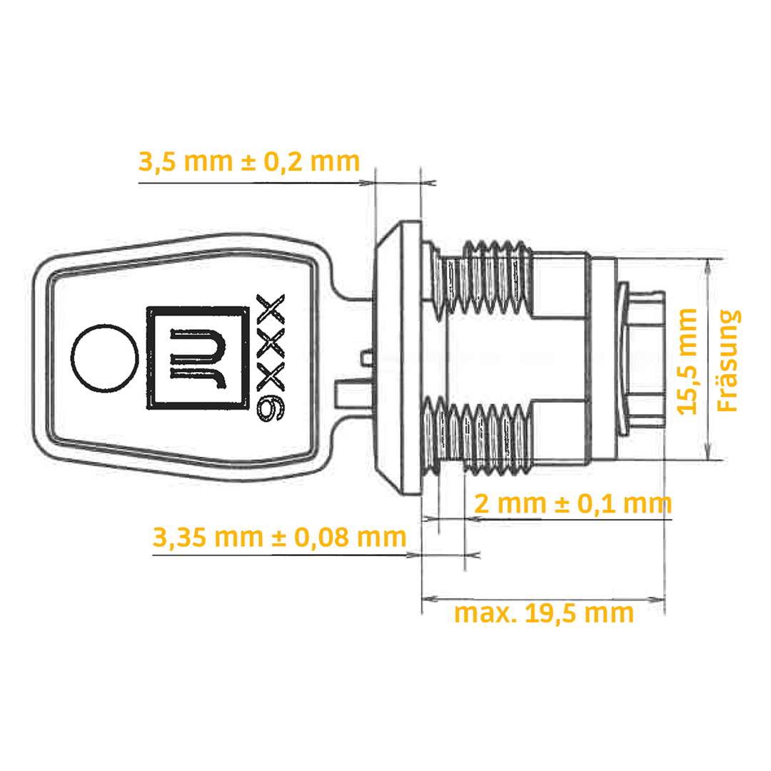 Zylinderschloss 21-109 mit flacher Stirnseite, Durchmesser 22 mm mit Schließung Bxxx (bis BJ 2018) und 9xxx (ab BJ 2018).
