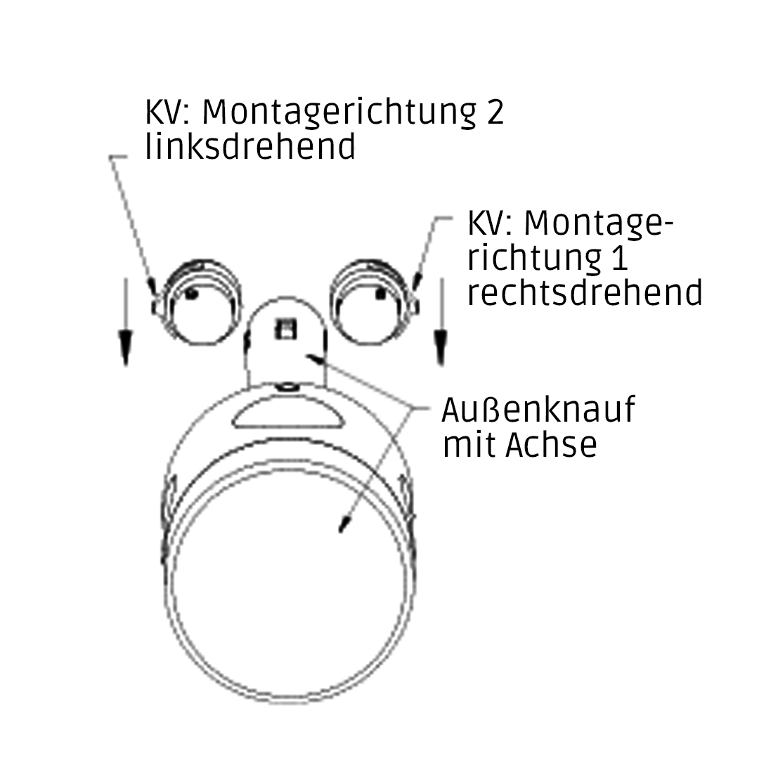 Die Komfort-Verriegelung KV ermöglicht ein vereinfachtes und komfortables Abschließen ohne Öffnungsmedium am Außenknauf des Batteriezylinders Z1. Zur Verriegelung der Tür sind keine Identifikationsmedien (Transponder, Touchcode oder Apps für iOS oder Android) erforderlich, somit wird keine Energie benötigt und die CR2-Batterie des Zylinders geschont. Zur Befestigung der Komfort-Verriegelung KV wird ein Inbusschlüssel 1,5mm oder Sechskantschraubendreher SD 1,5x60 benötigt. Der Außenknauf ist nach Installation des mechanischen Nachrüstelements in Zusperrichtung permanent mit der Schließnase verbunden. Die Komfortverriegelung kann in zwei Einbaupositionen, welche die Drehrichtung DIN Links und Rechts bestimmen, am inneren Ende der Außenachse eingeschoben und verschraubt werden.